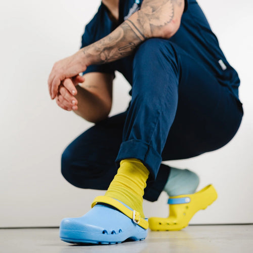 Wählen Sie aus 10 Farben wie Rot, Blau, Fuchsia oder Weiß und kombinieren Sie Schuh und Fersenriemen individuell. Mit unserem Klimaflex Konfigurator gestalten Sie Ihren persönlichen OP-Clog in wenigen Klicks.